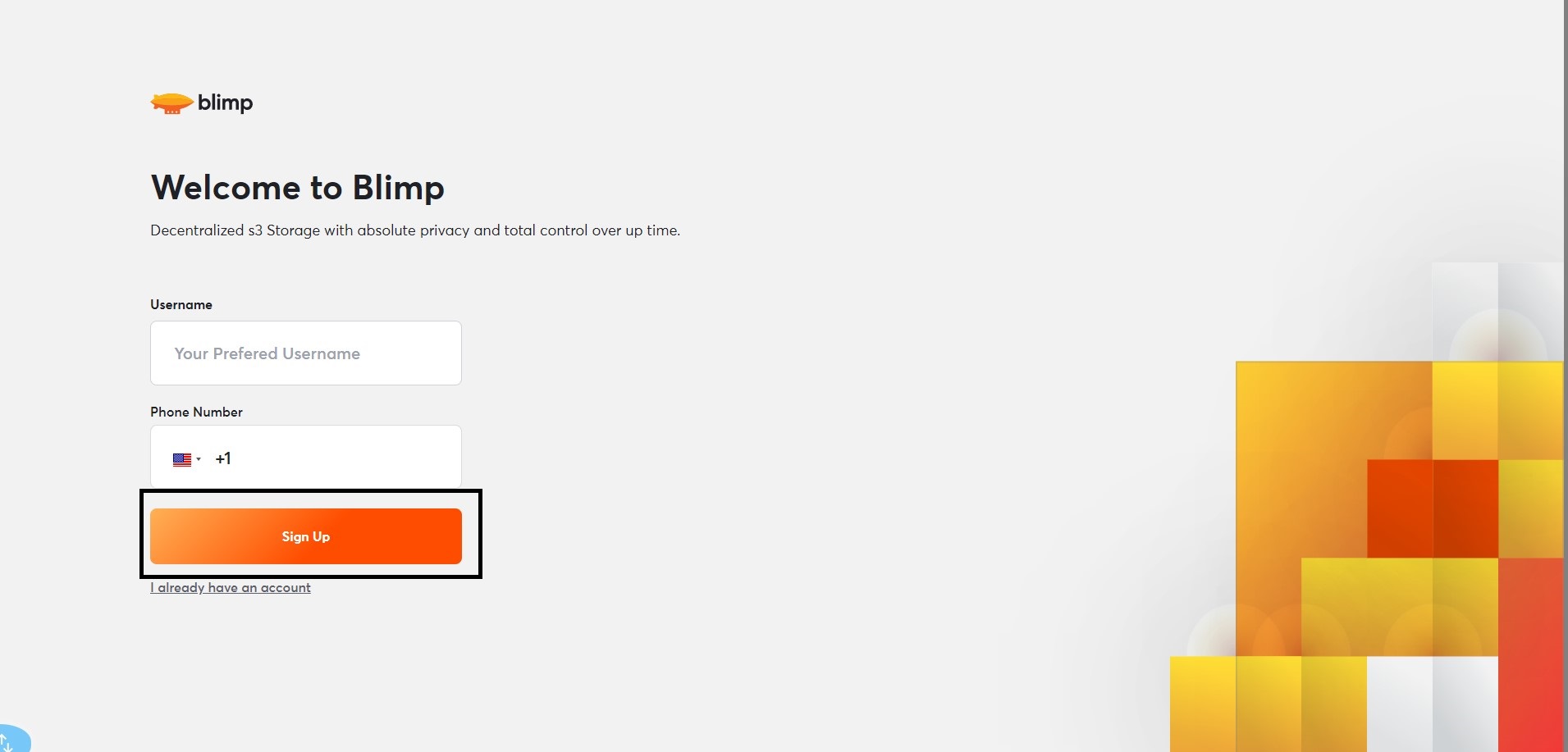 1. Visit the Blimp website and select "Sign Up."