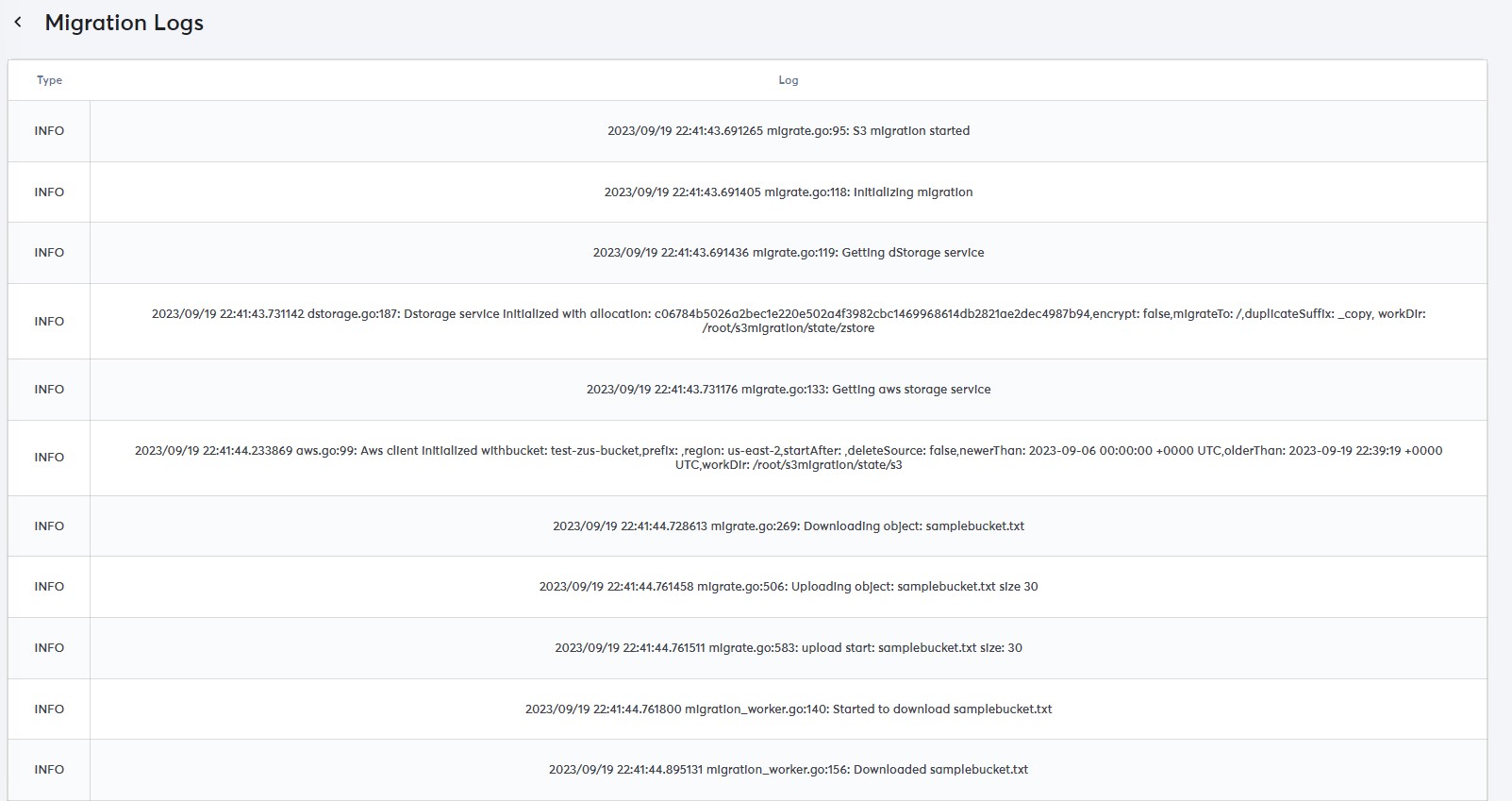 <figure><img src="https://979598987-files.gitbook.io/~/files/v0/b/gitbook-x-prod.appspot.com/o/spaces%2FNrAZJ0KGiwEbKkbVRYPu%2Fuploads%2F4i1JOoeen1ZlPQl62f9O%2Fblimp%20s3%20migration%20logs.jpg?alt=media&#x26;token=4edab05e-1cb6-4969-b567-c37d23491b7f" alt="" width="563"><figcaption></figcaption></figure>