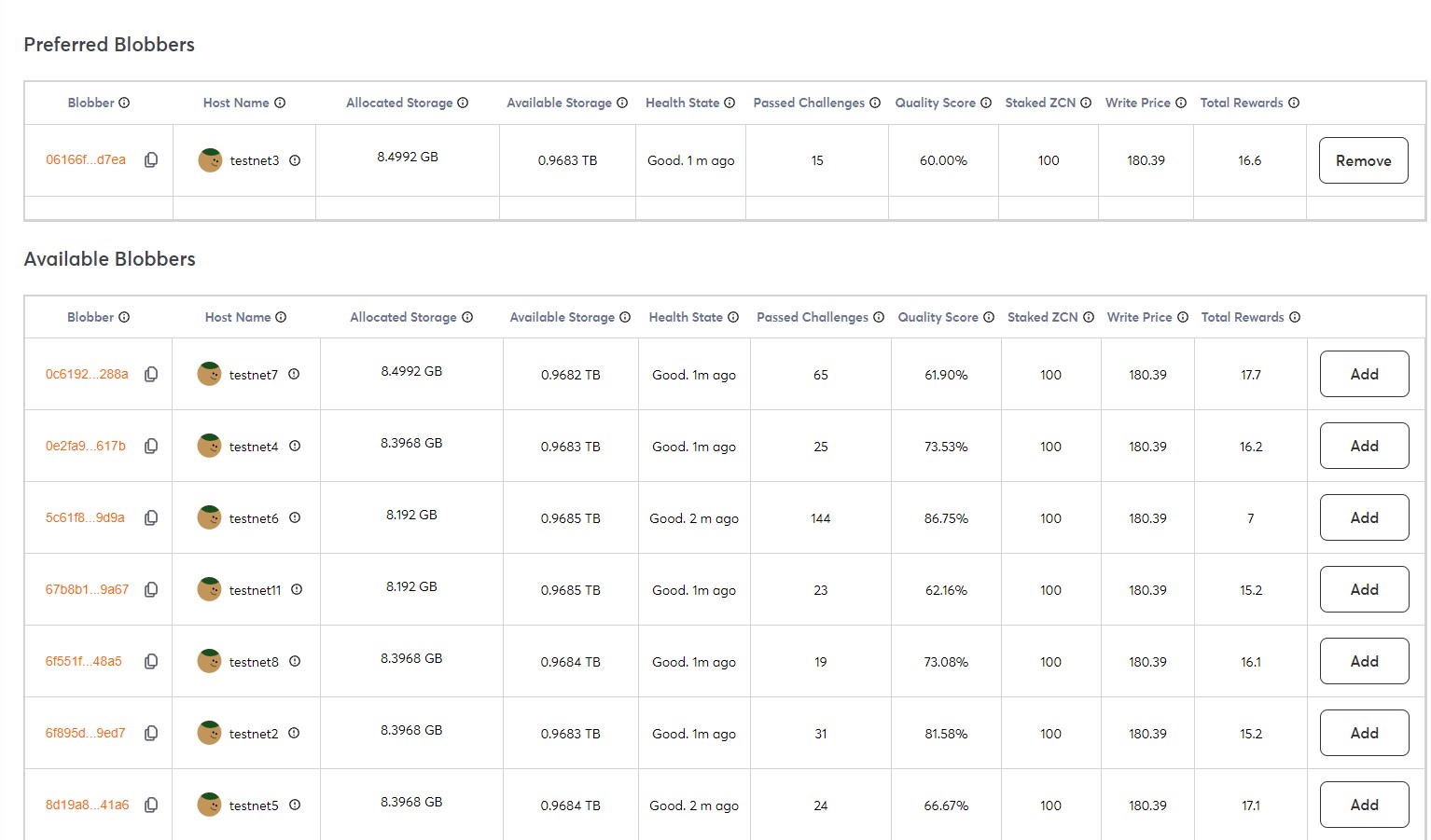 5. Afterward, click on "Add," and the selected blobber will be displayed in the Preferred Blobbers section.