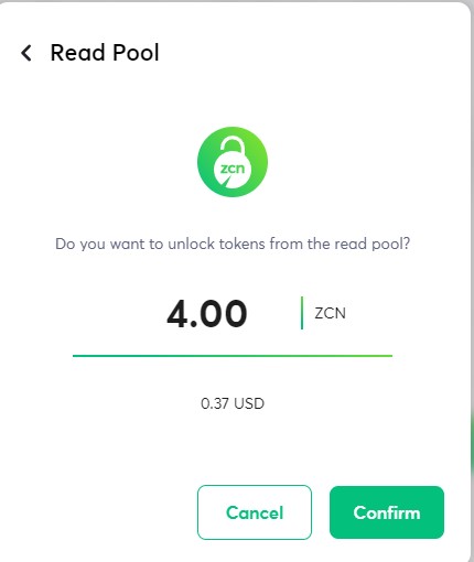 Provide Tokens to Lock in the read pool and click Confirm.